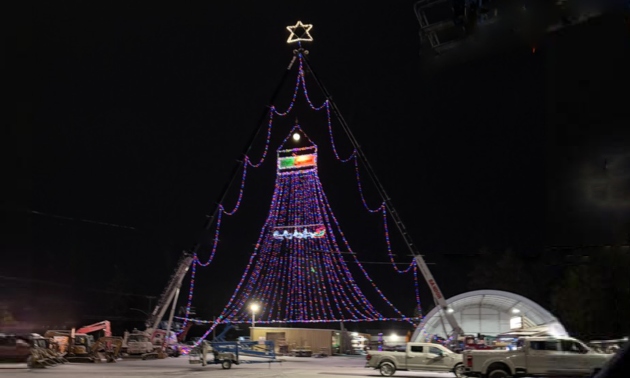Frank Sandor’s legacy shines every holiday season with a massive light display, suspended by two large cranes in the Sandor Rental parking lot.