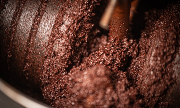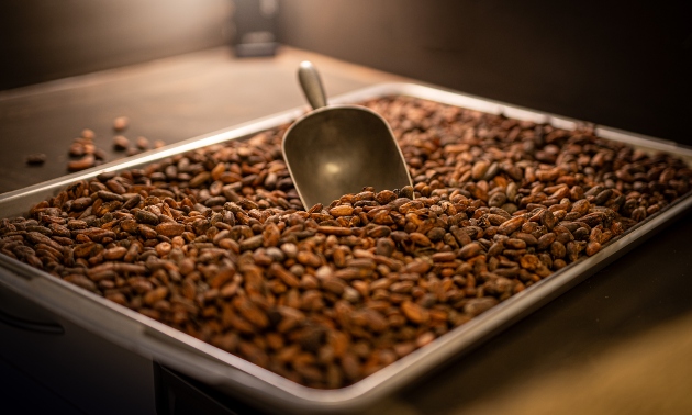 Aurélien Sudan, owner of Nelson’s Chocofellar, works with cacao during chocolate production at the company’s Nelson facility. — Photos courtesy of Adrian Wagner